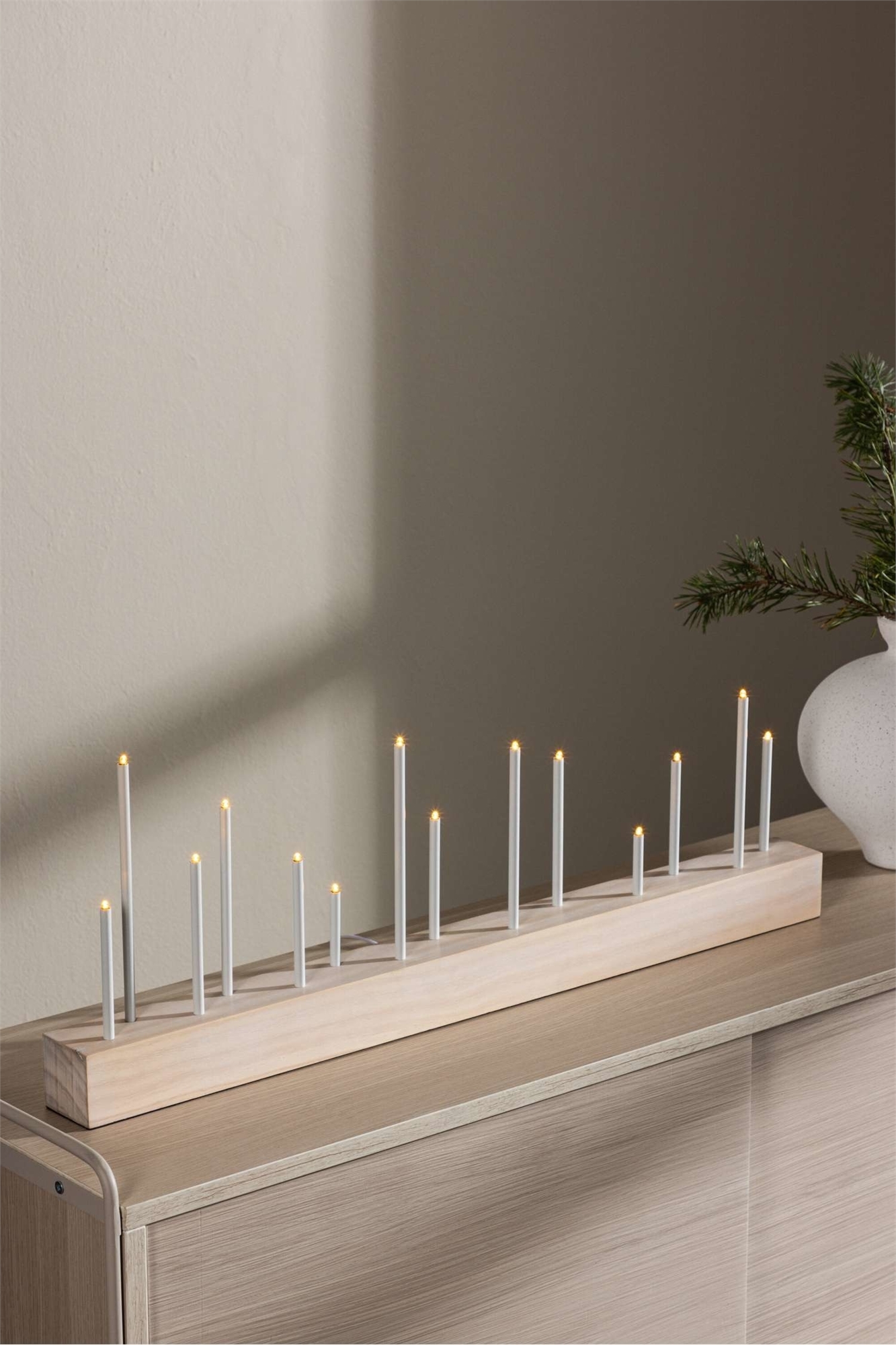 Добавьте в свой дом нотку традиционного очарования с помощью люстры Kungsberget Advent. Эта красивая адвент-люстра изготовлена из МДФ и представляет собой классическую интерпретацию традиционных адвентских украшений. Благодаря 14 лампочкам она излучает теплый и манящий свет, создающий атмосферу предвкушения Рождества. Дизайн из МДФ придает украшениям утонченность и вневременной характер, создавая успокаивающую атмосферу в вашем доме. Поместите его на обеденный стол, полку или в качестве центрального элемента рождественских украшений. Размеры: глубина: 6 см, высота: 24 см, ширина: 77 см.
