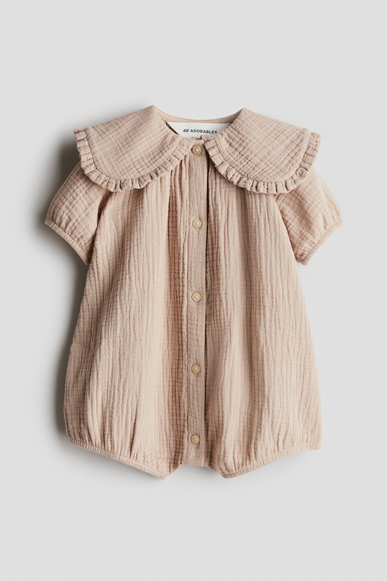 H&M Adorables. Ромпер из мягкого муслина с принтом по всей поверхности, из высококачественного хлопка. Большой воротник с оборками, пуговицы спереди и узкая резинка на манжетах и вокруг ног. Коллекция H&M Adorables - это подборка удобных и качественных вещей, не теряющих актуальности.