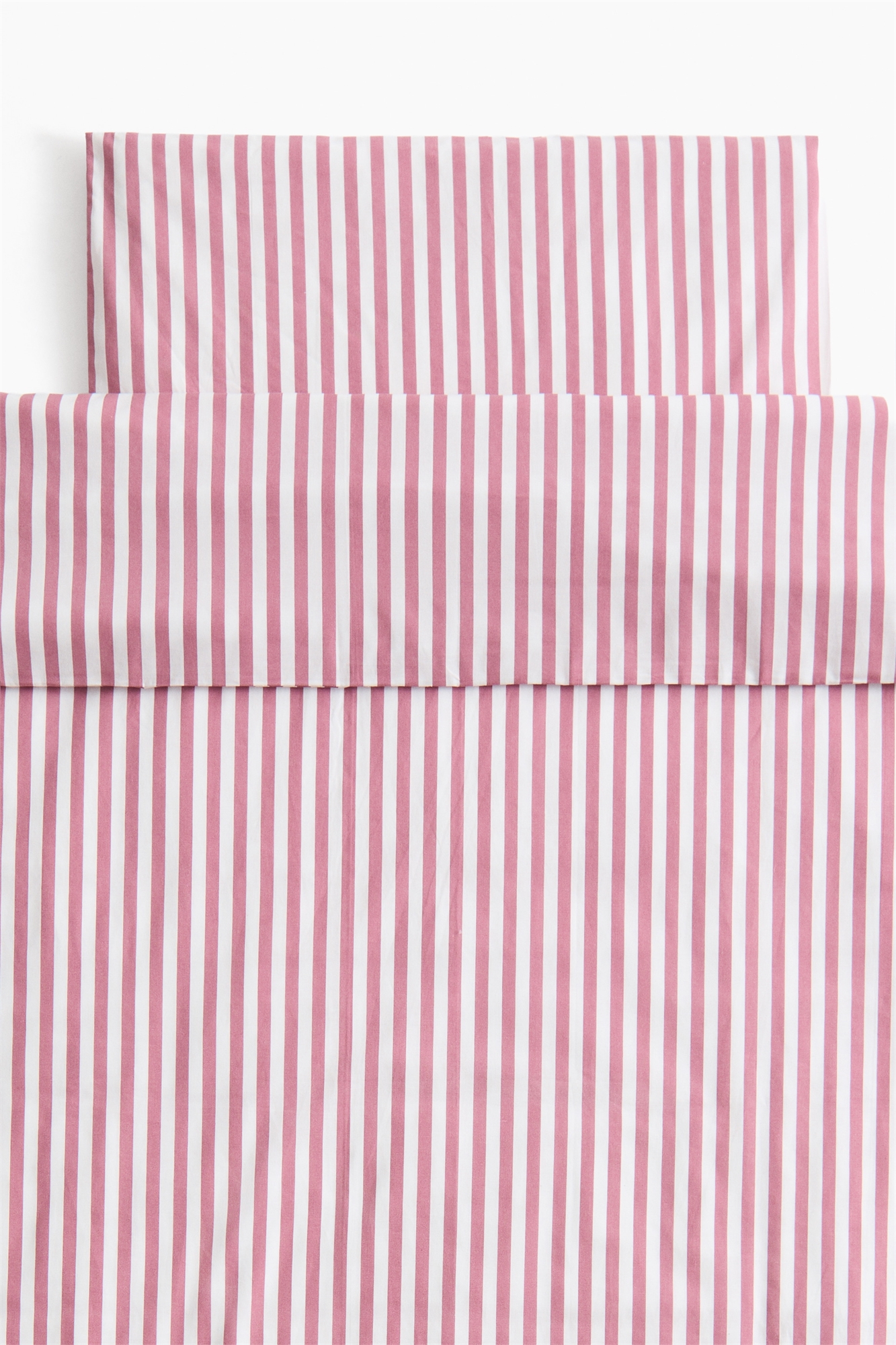 Комплект постельного белья для детской кроватки с пододеяльником и наволочкой из мягкого хлопкового полотна с принтом в полоску. Пододеяльник имеет отверстие внизу для удобства смены, а наволочка - классический конверт.