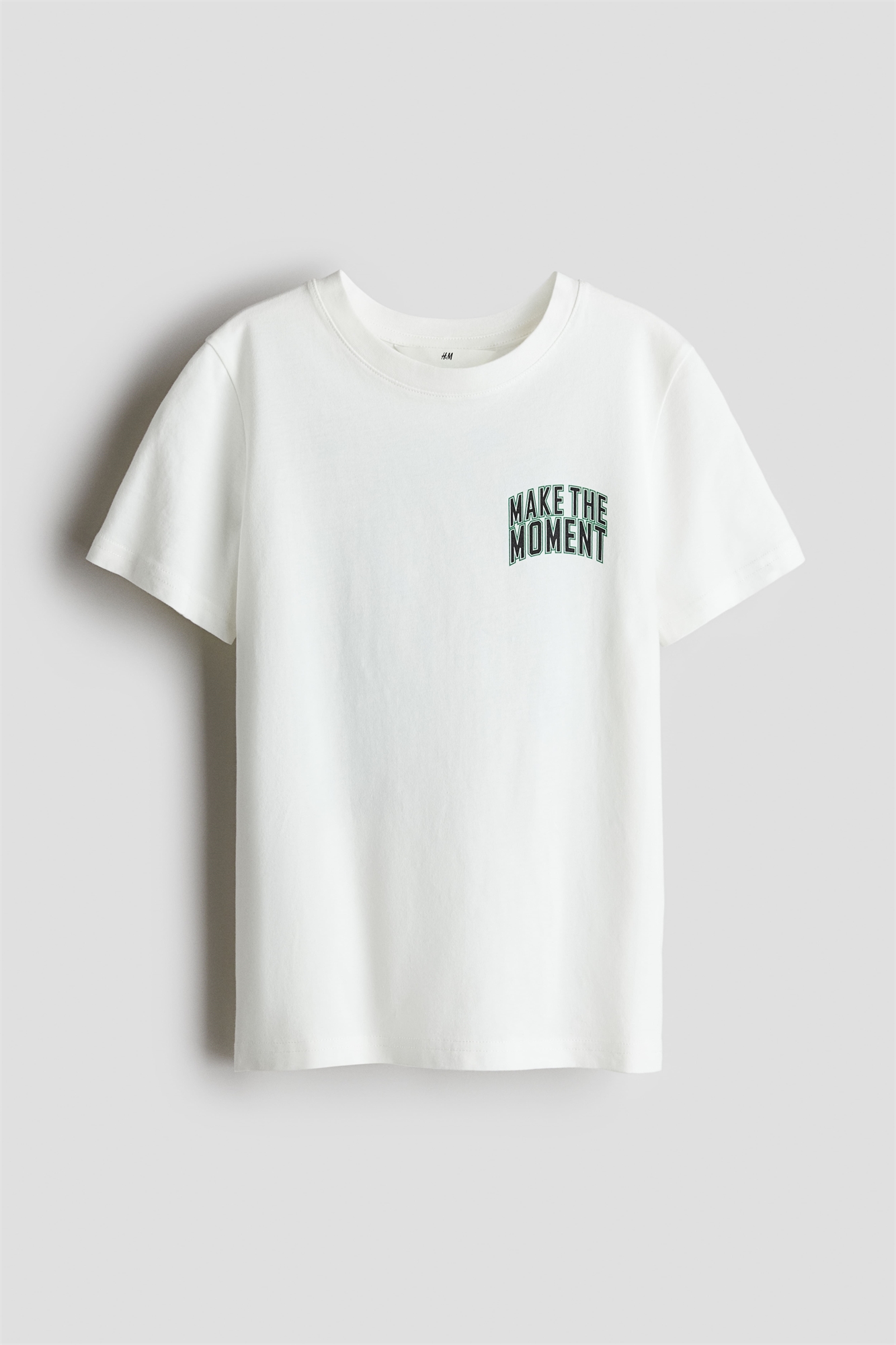 Футболка из хлопкового джерси с принтом, круглым вырезом с ребристой отделкой и прямым покроем.