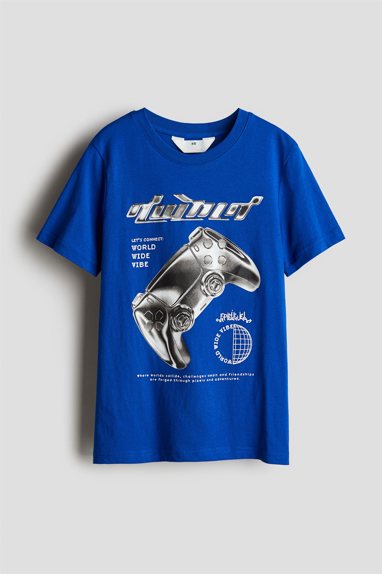 Футболка из хлопкового джерси с принтом, круглым вырезом с ребристой отделкой и прямым покроем.
