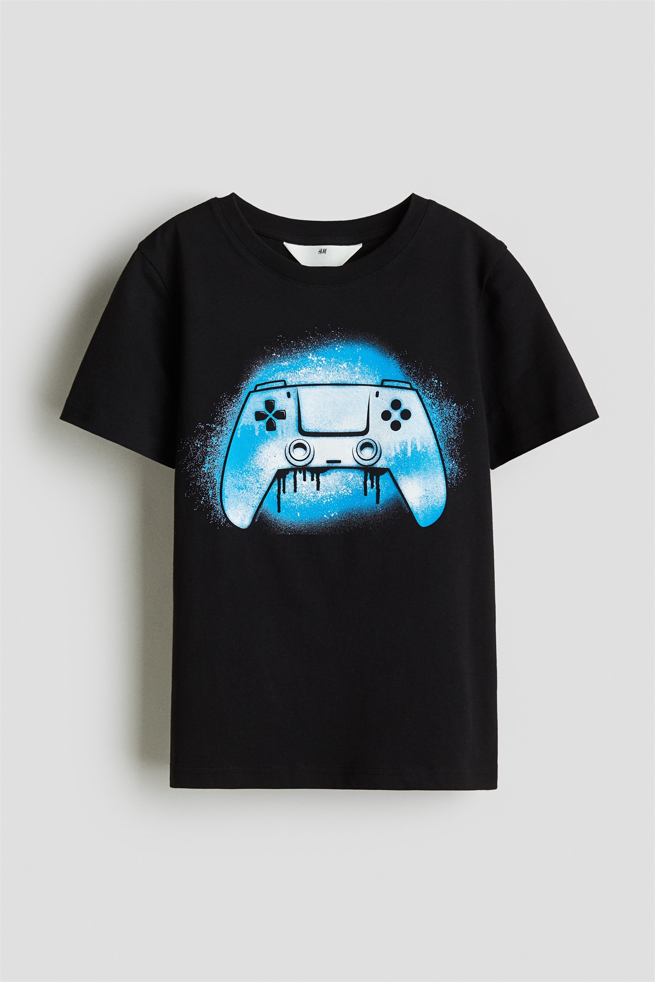 Футболка из хлопкового джерси с принтом, круглым вырезом с ребристой отделкой и прямым покроем.
