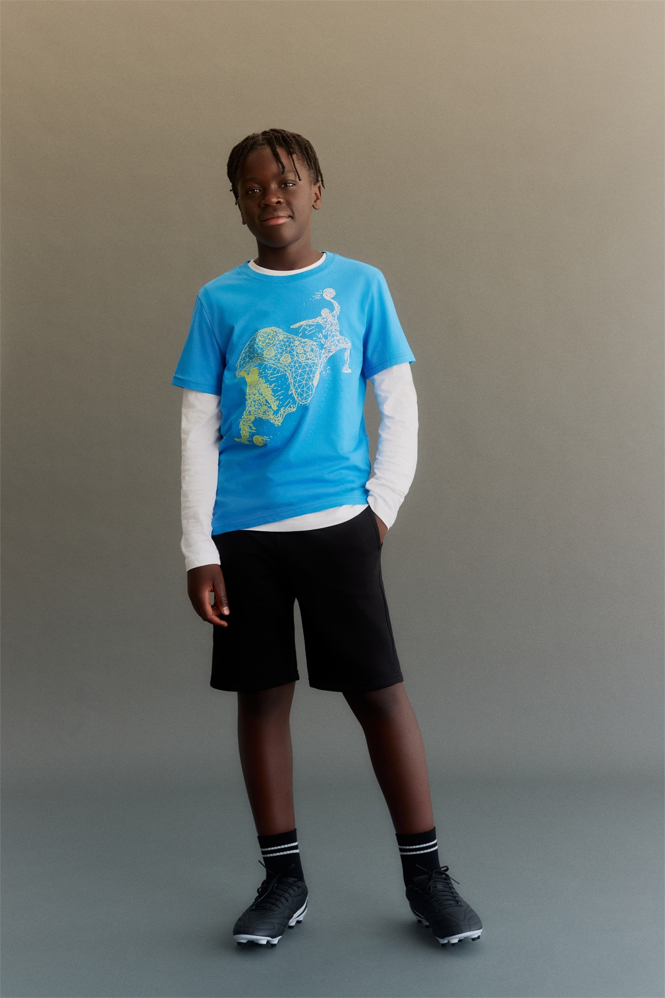 Футболка из хлопкового джерси с принтом, круглым вырезом с ребристой отделкой и прямым покроем.