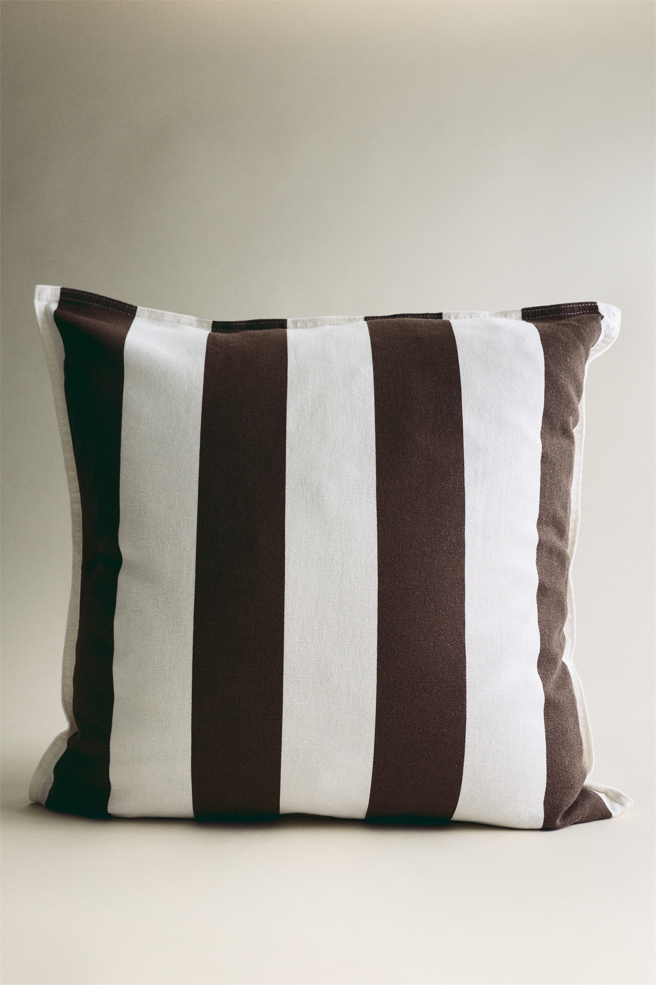 Чехол для подушки с плетением из смеси льна и хлопка. С полосатым узором, строчкой по краям и потайной молнией сзади.