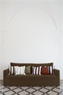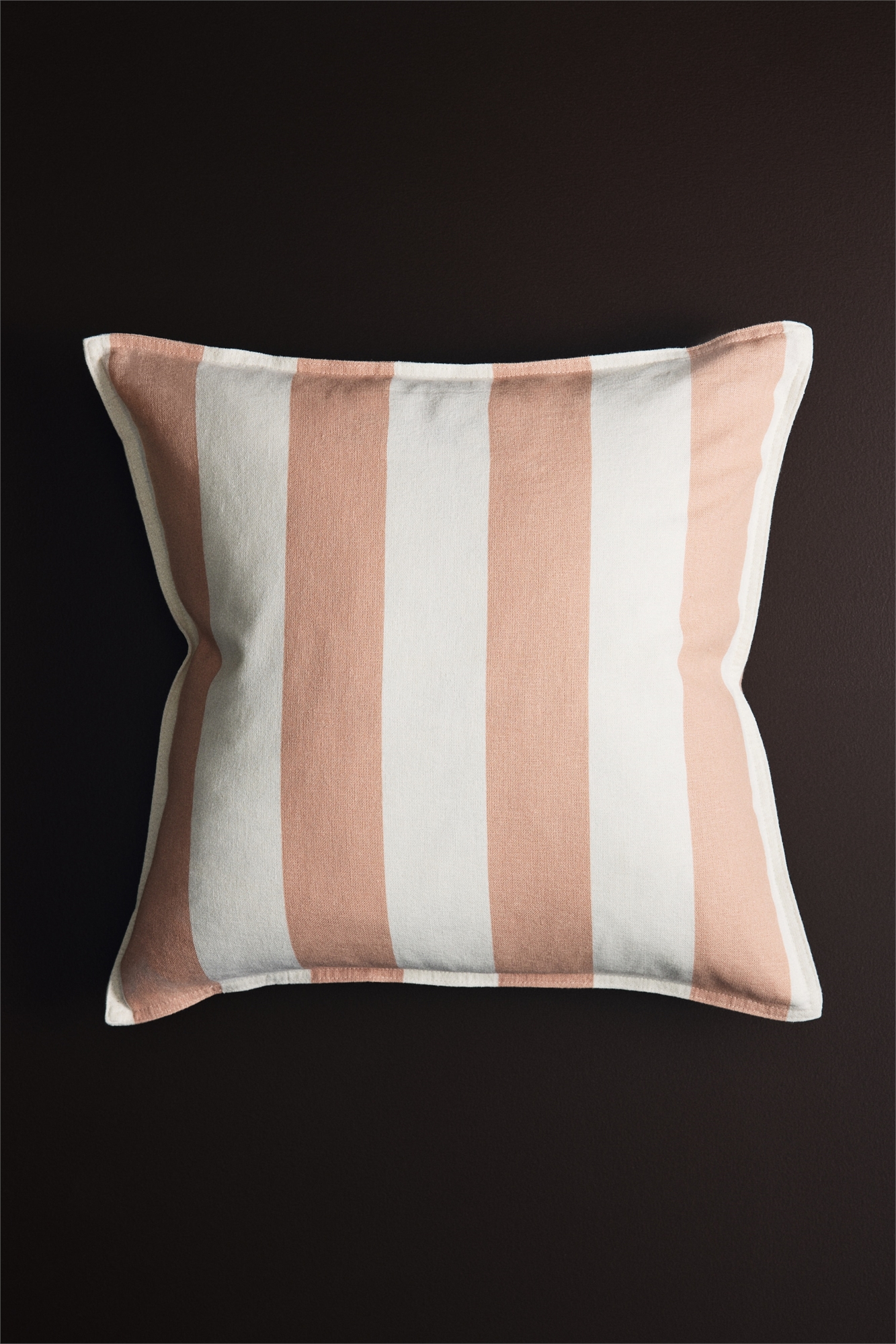 Чехол для подушки с плетением из смеси льна и хлопка. С полосатым узором, строчкой по краям и потайной молнией сзади.
