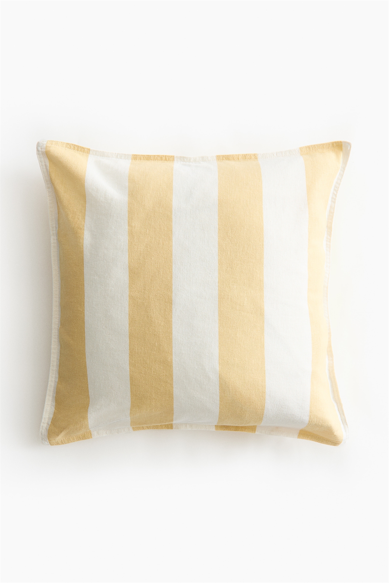 Чехол для подушки с плетением из смеси льна и хлопка. С полосатым узором, строчкой по краям и потайной молнией сзади.