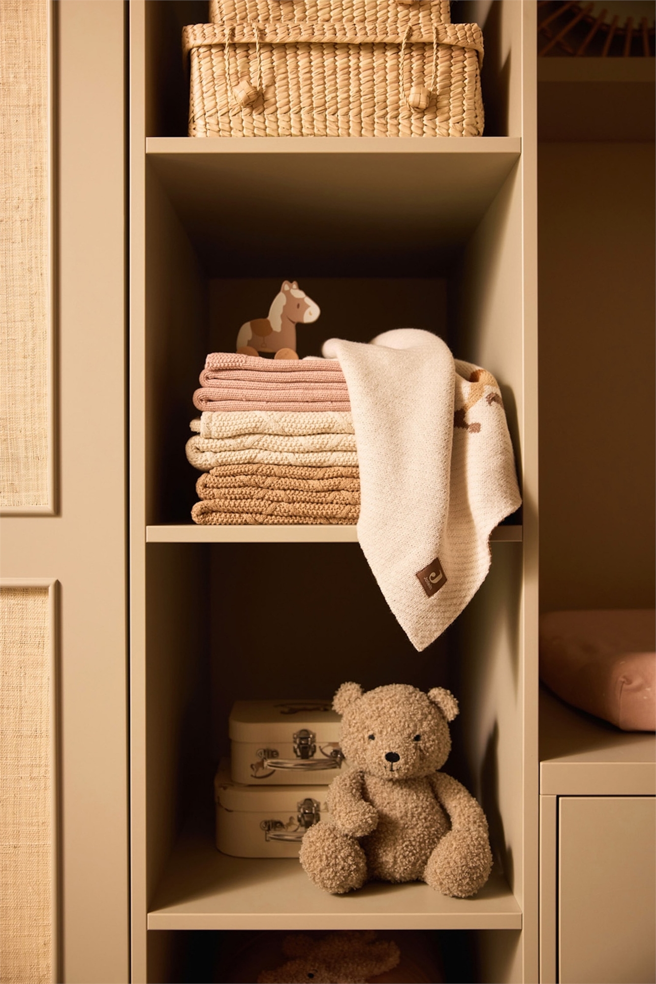 Это чудесное одеяло обеспечит тепло и комфорт вашему малышу. Как внутри, так и снаружи оно имеет красивую вязаную фактуру. Идеально подходит для детской кроватки или для прогулок в коляске. Доступно в нейтральном цвете Oatmeal - вечный must-have для любой детской.