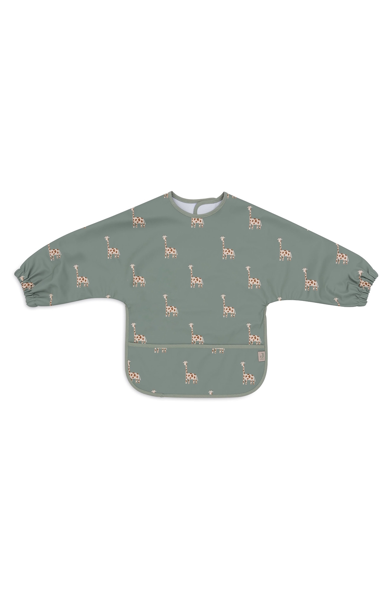 Этот нагрудник с рукавами просто великолепен! Благодаря практичным рукавам он особенно хорошо защищает одежду вашего ребенка или подростка, как милый фартук. Вы когда-нибудь задумывались, почему на нижней стороне двойной слой ткани? Это не просто так! Когда ваш ребенок ест самостоятельно, пища регулярно стекает по его подбородку и капает на нагрудник, а нижний край нагрудника собирает остатки пищи, как практичный поддон для капель. Вы обязательно оцените это! Он пригодится не только для еды, но и для поделок и рисования пальчиками. В нашей веселой теме Jungle Jambo этот нагрудник еще веселее, потому что он украшен жирафами на пепельно-зеленом фоне! Вы можете купить нагрудники в практичной упаковке из 2 штук.