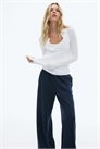 Легкие треники из хлопкового микса. Эластичный пояс с кулиской, незаметные боковые карманы и прямые ноги. Расслабленный крой.