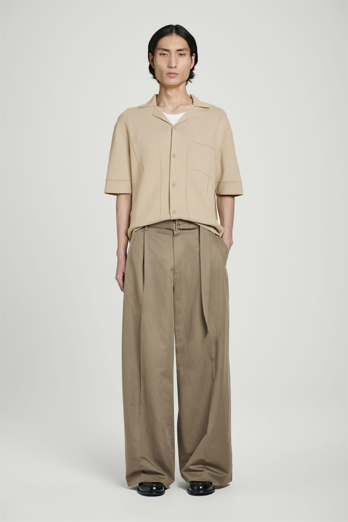 Преувеличенные пропорции позволяют по-новому взглянуть на классику гардероба в этом сезоне. Эти брюки сшиты из эластичной хлопковой ткани с широкими штанинами и дополнены вместительными складками спереди и поясом на талии. Носите их с трикотажем или простой футболкой. Свободный крой Застежка на крючок и молнию TENCEL™ является торговой маркой Lenzing AG. TENCEL™ Lyocell производится из возобновляемых источников древесины с использованием процесса, в котором перерабатывается 99% всех химических веществ и воды. Подкладка: 100% хлопок. Без учета отделки / Машинная стирка Внутренний шов ноги размера EU 48 составляет 73,6 см / Модель носит размер EU 48