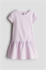 Платье длиной до колена из плотного джинсового трикотажа с круглым вырезом. Отверстие для ключа с пуговицей сзади и короткие рукава. Присборенный шов ниже талии и слегка расклешенная юбка.