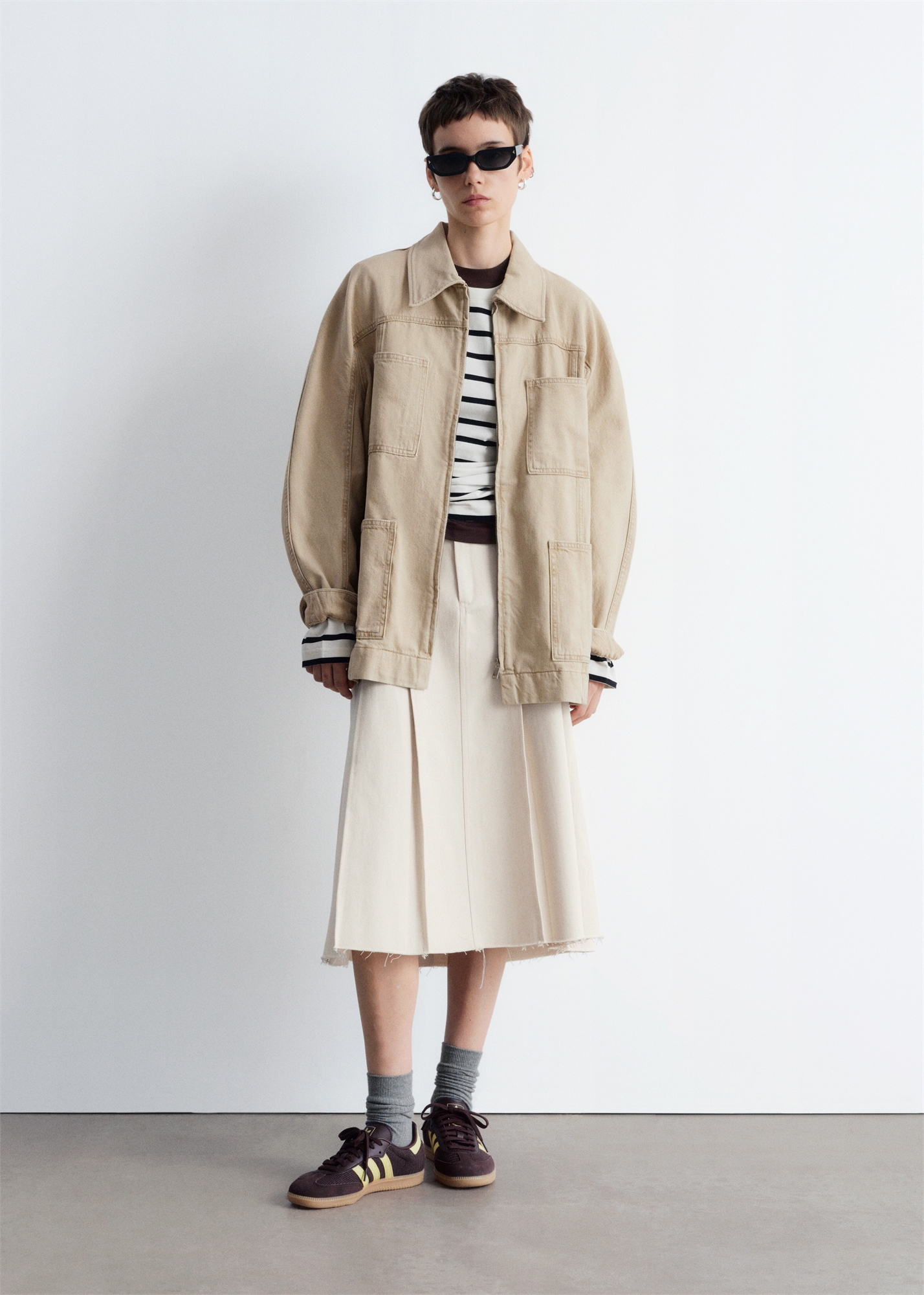 Эта куртка изготовлена из жесткого хлопкового денима. Она имеет классический воротник и рукава в форме кокона, прошитые швы, четыре накладных кармана и тонкий завязывающийся пояс, который позволяет затянуть талию для более четкой формы. Повседневный вариант с современным уклоном. Длина куртки: 72 см / 28,3" (размер S)