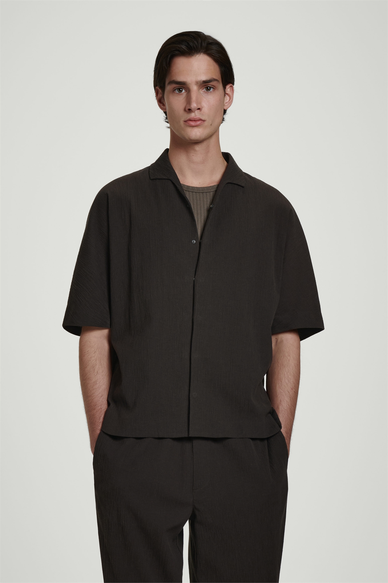 Эта непринужденная рубашка позволит вам без труда создать летний образ. Эта современная вещь, выполненная из мятого хлопкового трикотажа насыщенного цвета эспрессо, имеет воротник-стойку, застежки на кнопки и косой подол. Носите его в комплекте с подходящими брюками. Свободный кройЗастежка на кнопкиЛучшая альтернатива обычному полиэстеру - переработанный полиэстер, изготовленный из отходов до и после утилизации Материал: 70% хлопок, 30% переработанный полиэстер. Без учета отделки / Машинная стирка Длина по спинке для размера M составляет 66,9 см / Модель носит размер M
