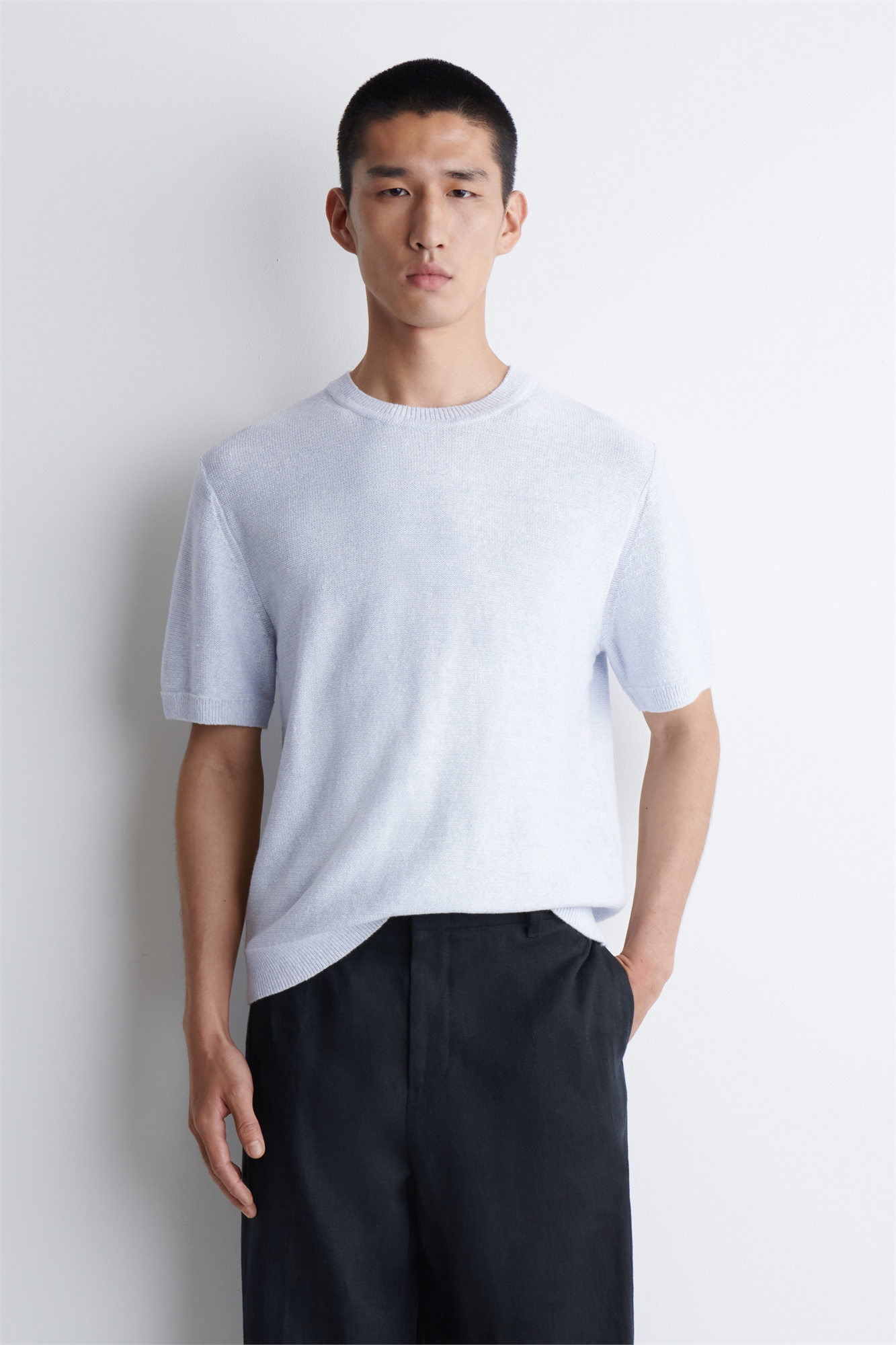 Эта современная футболка, созданная для теплых дней, связана из дышащей льняной и хлопковой пряжи, скрученной вместе для создания нюансного оттенка mélange. Она имеет классический покрой, ребристую горловину и короткие рукава. Regular fit Материал: 68% льна, 32% хлопка. Без учета отделки / Машинная стирка Длина по спинке для размера M составляет 62 см / Модель носит размер M