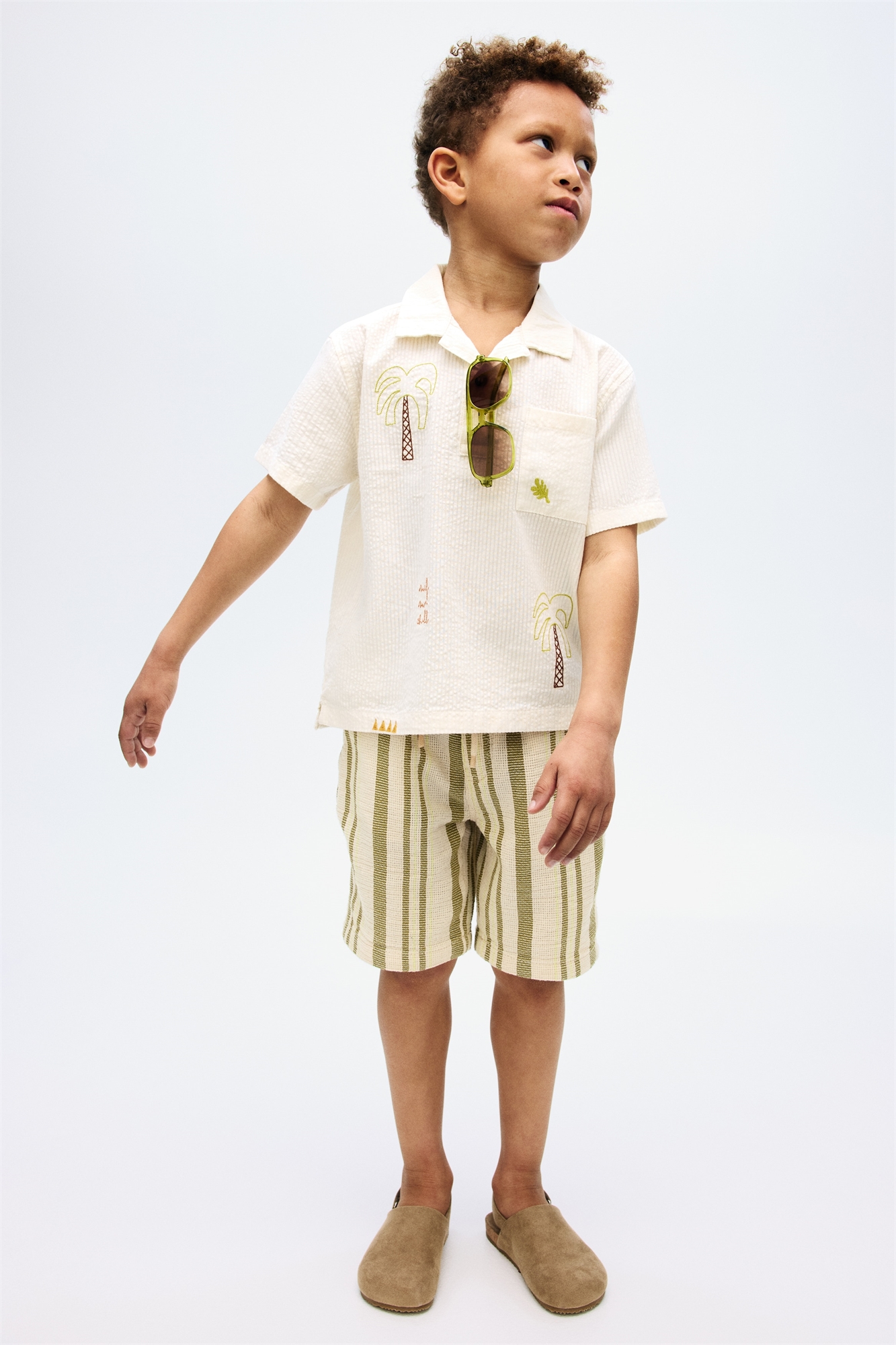 Шорты из хлопкового микса. Свободный крой, эластичный пояс с завязками и диагональные боковые карманы.
