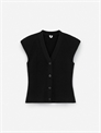 Топ без рукавов из хлопкового трикотажа в рубчик. Спереди V-образный разрез и застежка на пуговицы. Обычный крой.