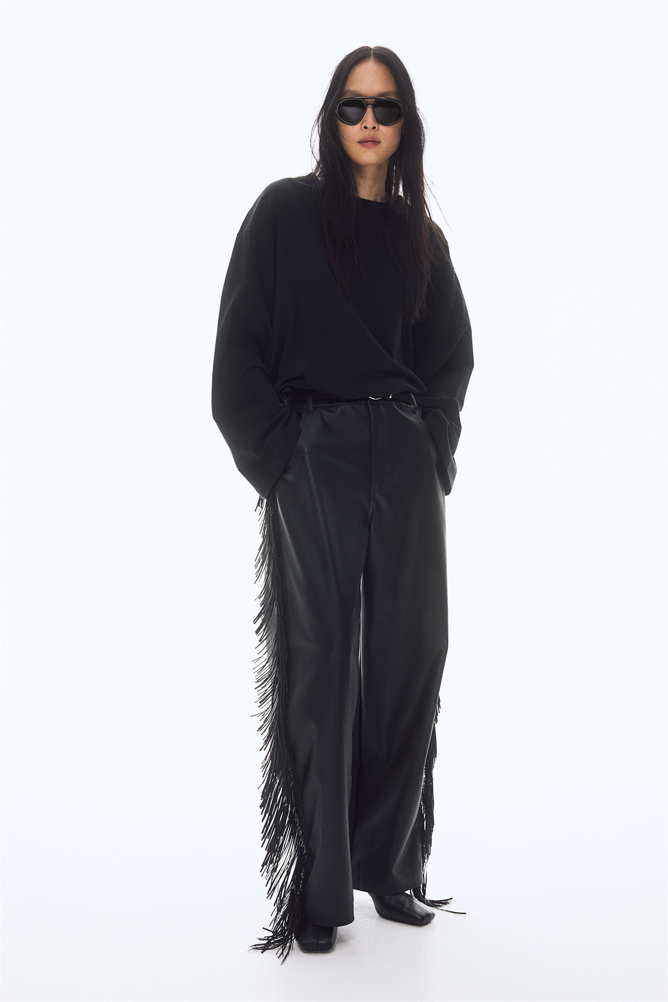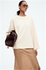 Свободный топ из хлопкового джерси средней плотности с ребристой отделкой по вырезу горловины, спущенными плечами и длинными рукавами.