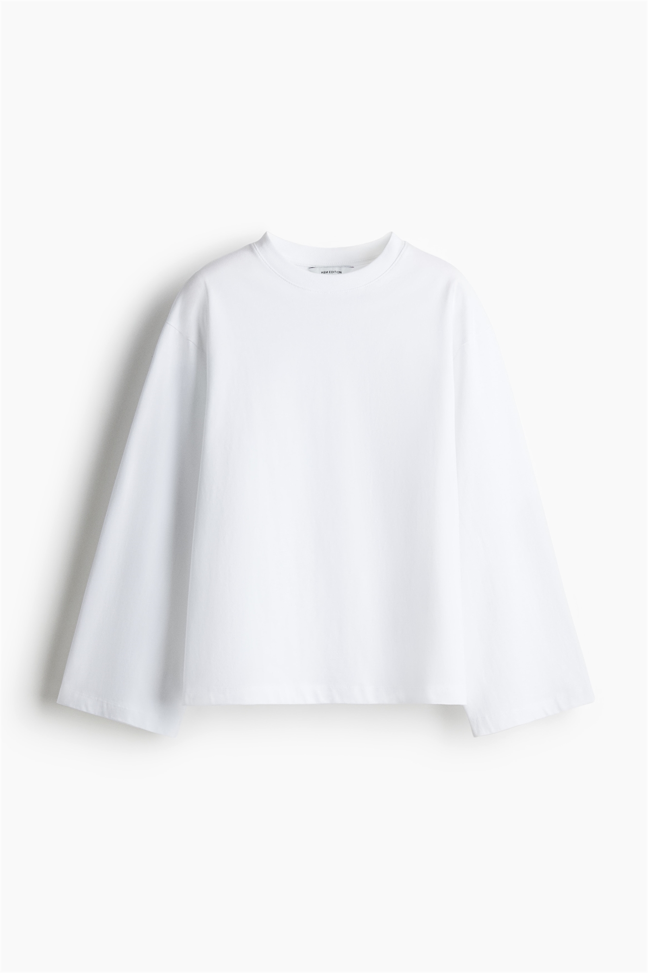 Свободный топ из хлопкового джерси средней плотности с ребристой отделкой по вырезу горловины, спущенными плечами и длинными рукавами.