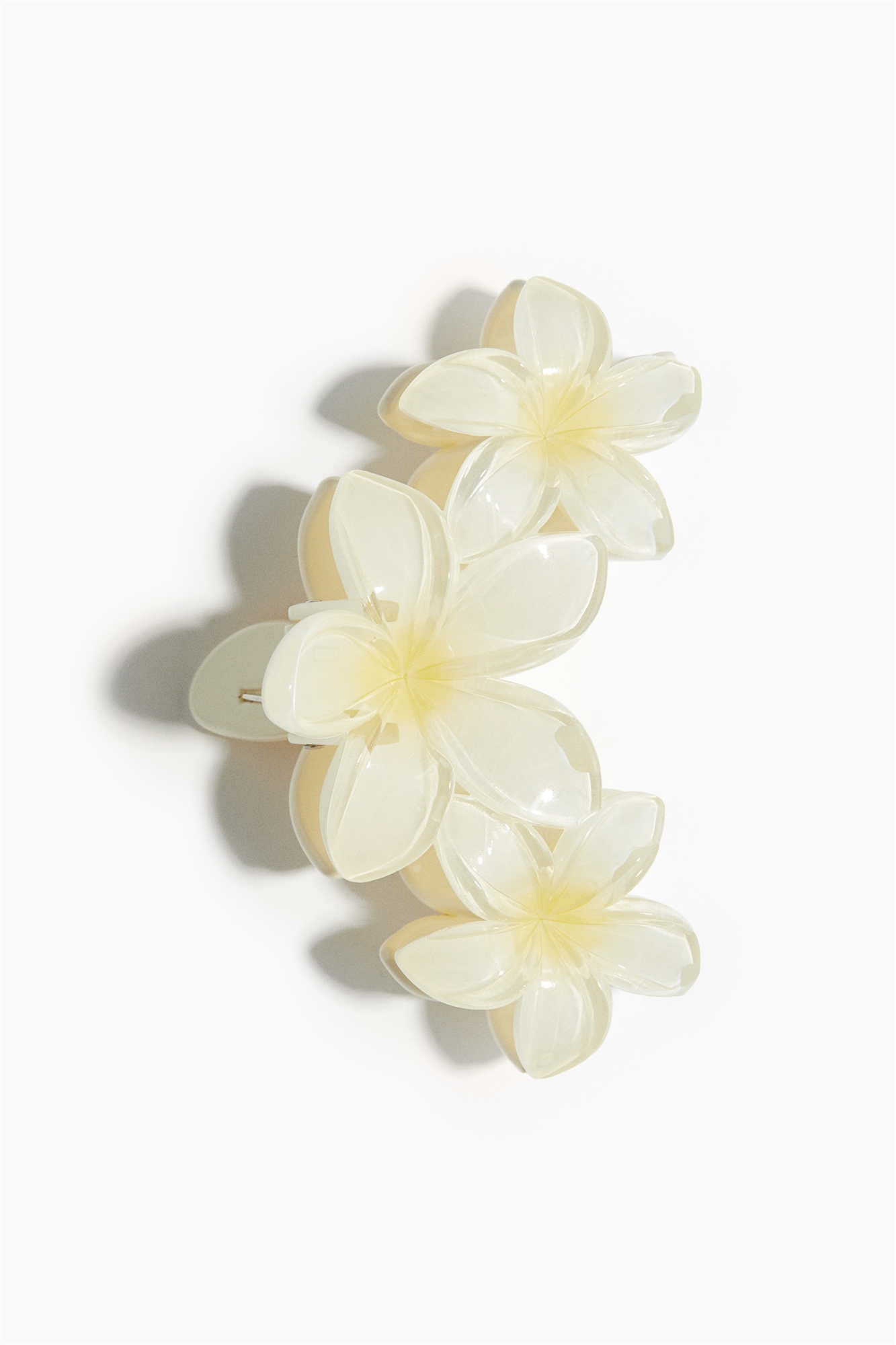 Пластиковый когтеточка для волос, украшенная нежными цветочными акцентами, идеально подходит для придания тропического оттенка вашей прическе.