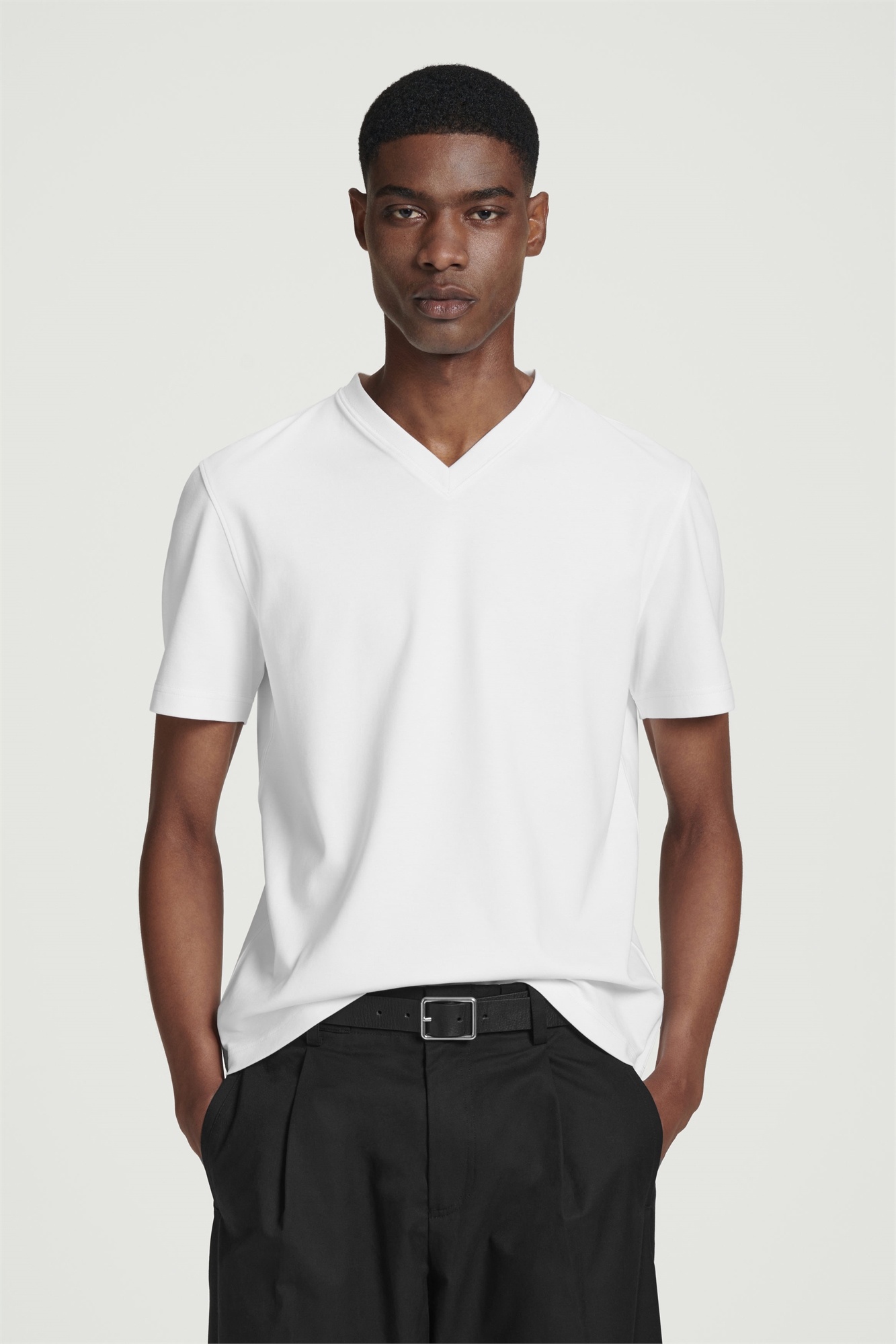 COS - это сокращение для таких элегантных вещей, как эта футболка с V-образным вырезом. Изготовленная из чистого органического хлопка, она выполнена из интерлока, двойного трикотажа, что придает ей особую привлекательность. Она имеет классический крой, который легко сочетается с другими моделями, что позволяет носить ее круглый год. Regular fit, 245gsm Материал: 100% органический хлопок. Без учета отделки / Машинная стирка Длина по спинке для размера M составляет 65,5 см / Модель носит размер M