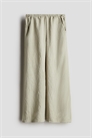 Брюки из воздушного, ворсистого переплетения из смеси вискозы. Эластичная талия с декоративными завязками по бокам, диагональные передние карманы и прямые ноги.