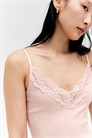 Облегающий топ из ребристого трикотажа с узкими бретелями и V-образным вырезом с кружевной отделкой.
