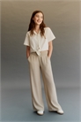 Брюки из воздушной ткани с эффектом "кринклид", с завязанной талией, диагональными боковыми карманами и широкими штанинами.