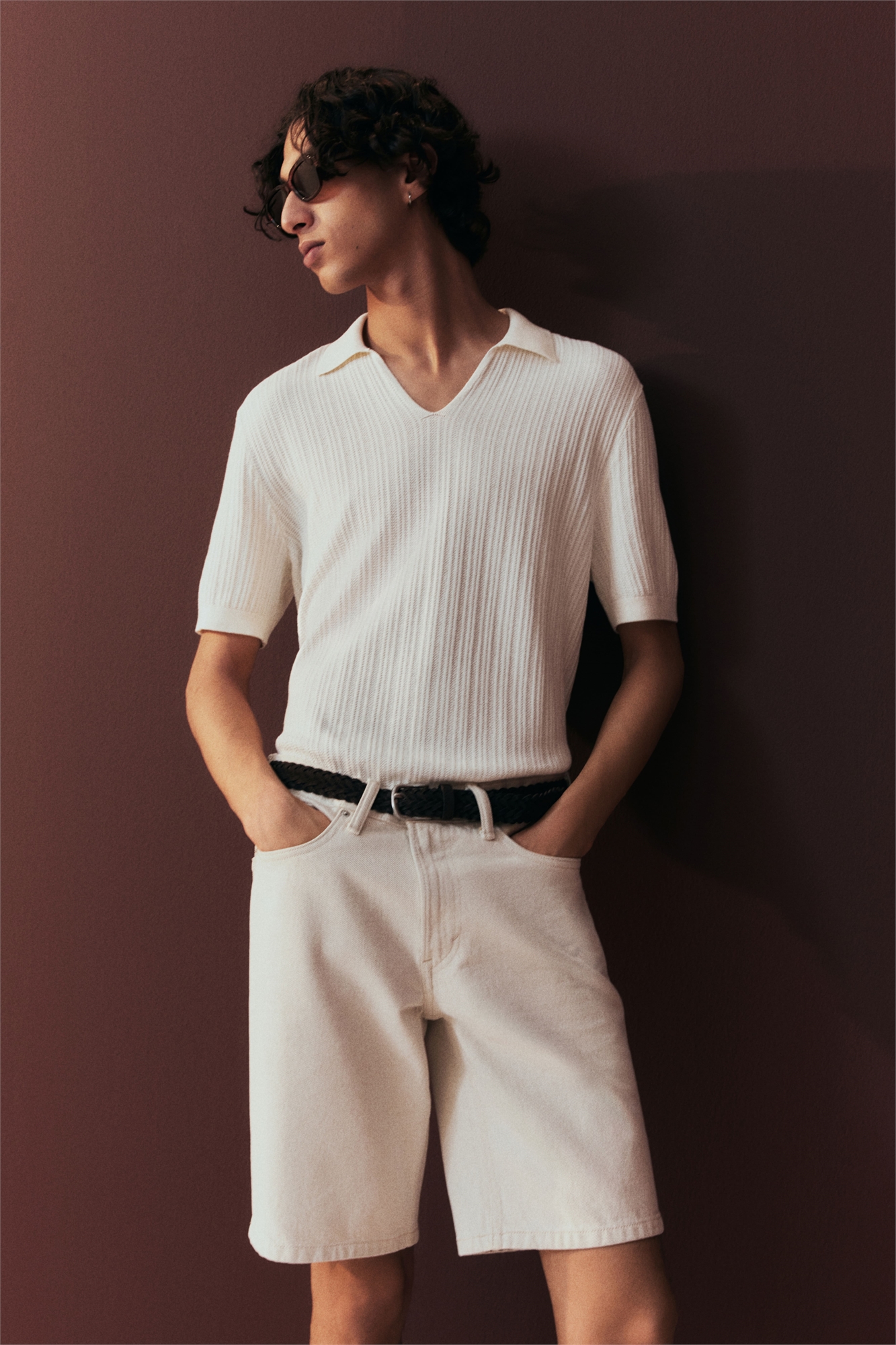 Шорты с 5 карманами из хлопкового денима с легким стретчем для комфорта. Прямые штанины и обычная посадка от талии до подола с удобным, более свободным покроем в области бедер. Регулярная талия, ширинка на молнии и пуговице.