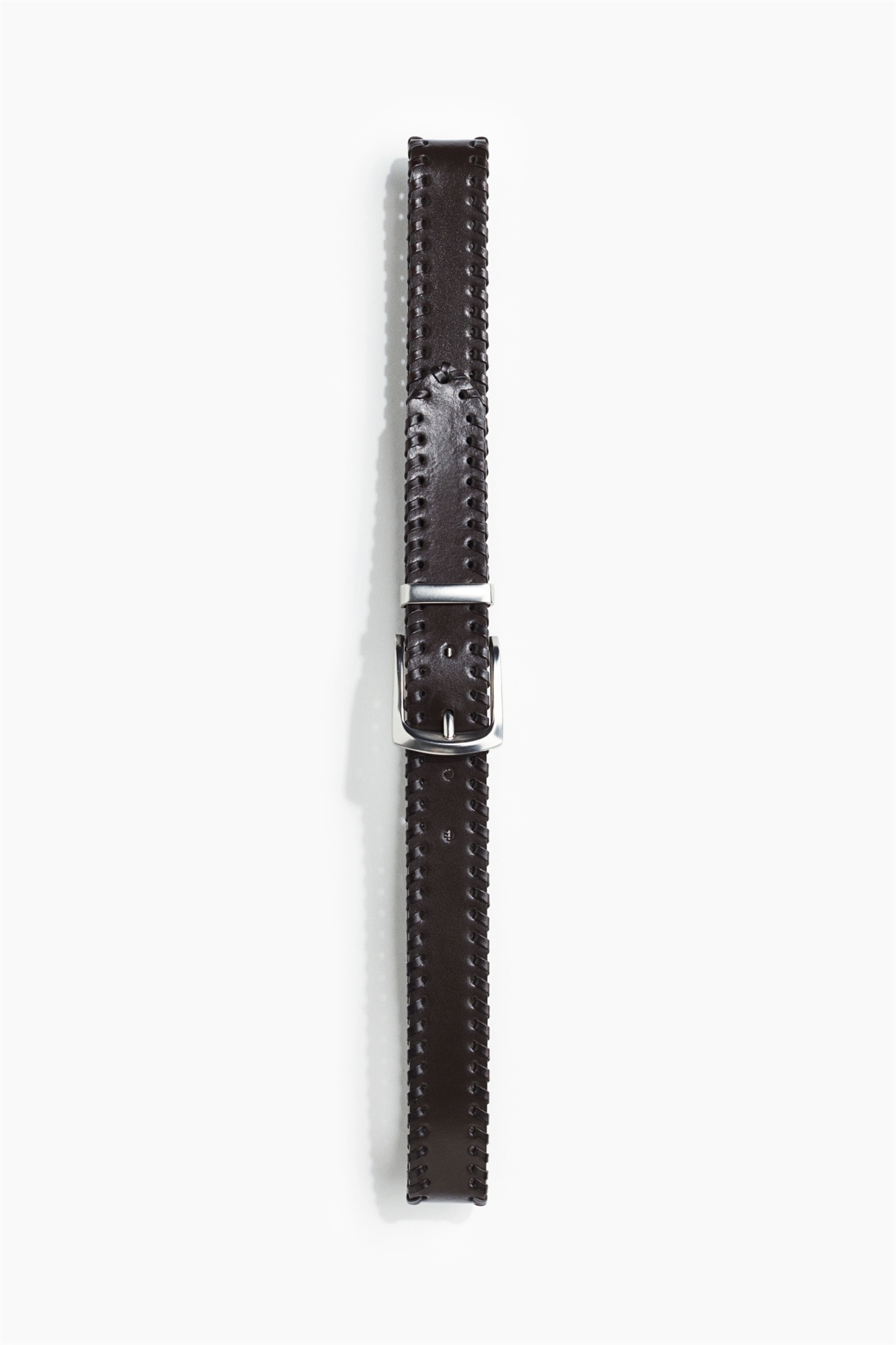 Кожаный ремень с декоративной строчкой и металлической пряжкой.