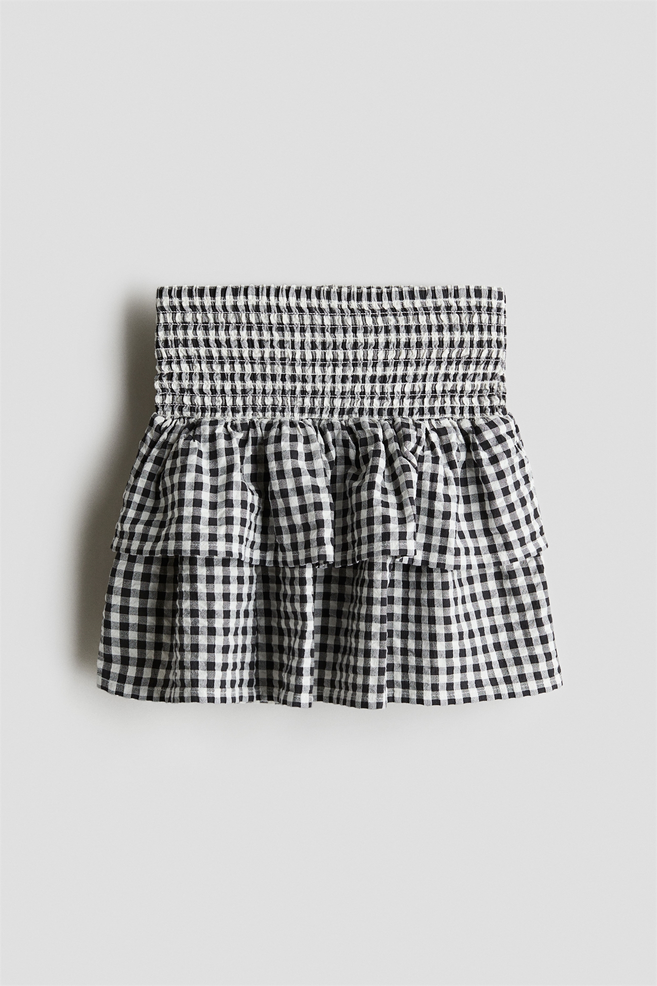 Юбка из мягкого полотна с широкой планкой на талии и собранными ярусами для придания дополнительного объема.