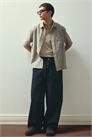 Джинсы из жесткого хлопкового денима с боковыми и задними карманами. Закругленная нога и мешковатый крой от сиденья до подола с большим запасом по всей длине ноги. Заниженная промежность и штанины у лодыжки. Регулярный эластичный пояс с утягивающим шнурком, застежка на молнию и пуговицу. Предназначены для повседневной носки.