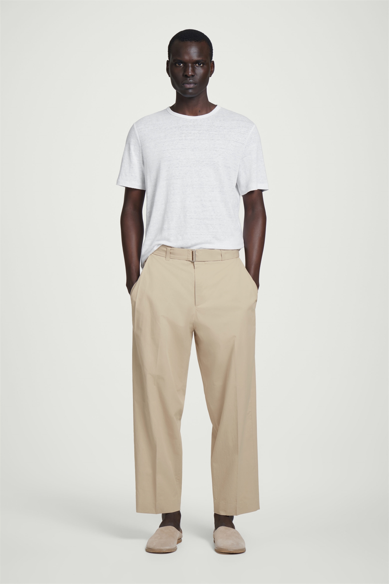 Эти брюки-клеш универсального темно-синего цвета сшиты из первоклассного хлопка Pima и оформлены острыми складками спереди. Аккуратные карманы позаимствованы из портновского искусства, а пояс с D-образным кольцом придает непринужденной форме тонкую четкость. Свободный кройЗастежка на крючок, планку и молниюОрганический хлопок - это хлопок, выращенный без использования искусственных пестицидов и удобрений и не содержащий генетически модифицированных организмов Материал: 100% органический хлопок Pima. Без учета отделки / Машинная стирка Внутренняя длина штанины размера EU 48 составляет 68,6 см / Модель носит размер EU 48