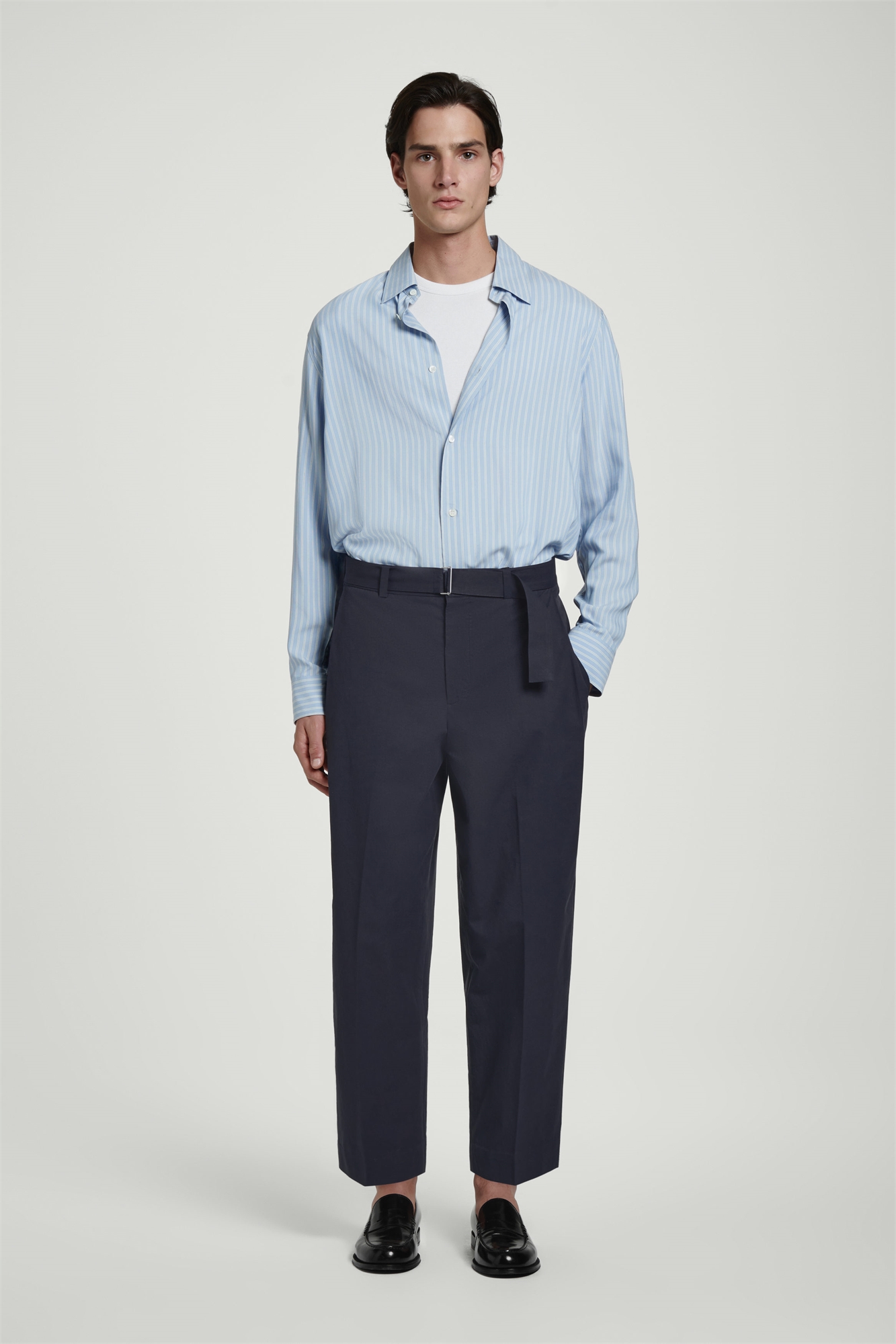 Эти брюки-клеш универсального темно-синего цвета сшиты из первоклассного хлопка Pima и оформлены острыми складками спереди. Аккуратные карманы позаимствованы из портновского искусства, а пояс с D-образным кольцом придает непринужденной форме тонкую четкость. Свободный кройЗастежка на крючок, планку и молниюОрганический хлопок - это хлопок, выращенный без использования искусственных пестицидов и удобрений и не содержащий генетически модифицированных организмов Материал: 100% органический хлопок Pima. Без учета отделки / Машинная стирка Внутренняя длина штанины размера EU 48 составляет 68,6 см / Модель носит размер EU 48
