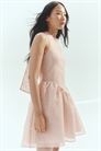 Короткое платье из полотняного переплетения с вышитым узором. Облегающий лиф с завязками на талии и частично открытой спиной со скрытой застежкой-молнией и застежкой-крючком внизу. Изогнутый, собранный шов на талии и мягко расклешенная юбка. На подкладке.