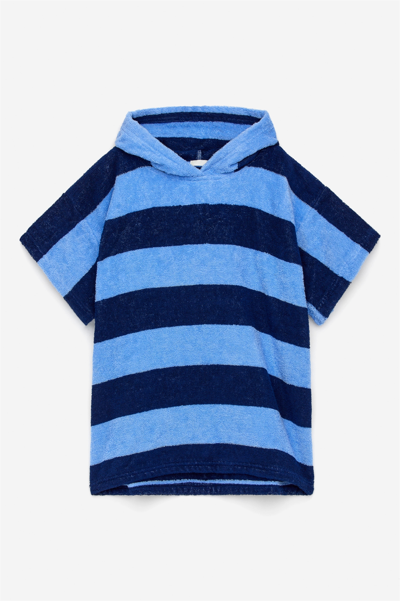 Футболка с капюшоном из мягкой махровой ткани, изготовленной из хлопка. Практичная вещь на пляже или у бассейна. Посадка оверсайз.