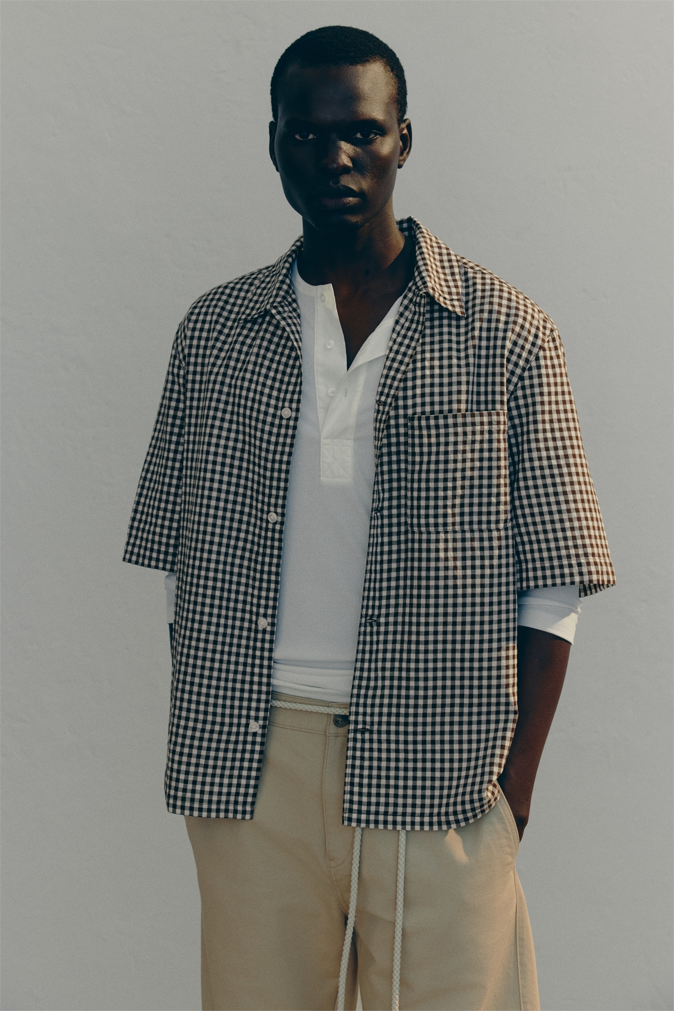 Рубашка с короткими рукавами из хлопкового микса с отложным воротником, французским передом, передом, передом и открытым нагрудным карманом. Подол прямого кроя с разрезом с каждой стороны. Регулярный крой для комфортной носки и классического силуэта.