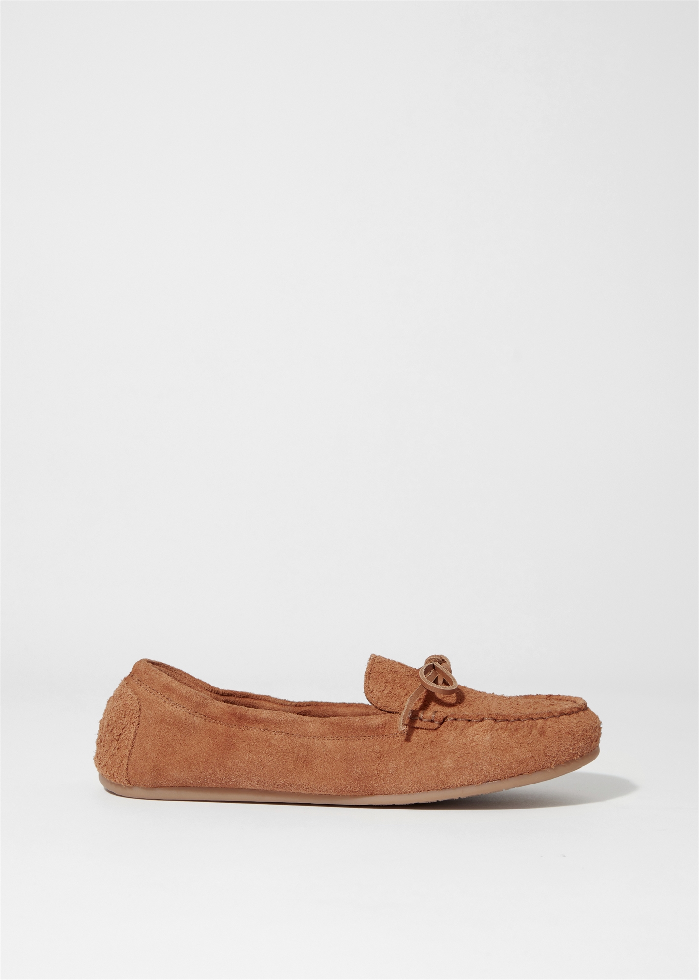 Эти мокасины изготовлены из эластичной замши с матовой отделкой в Португалии. Они украшены тональными кожаными завязками и имеют эластичные задники для удобства надевания и снятия.