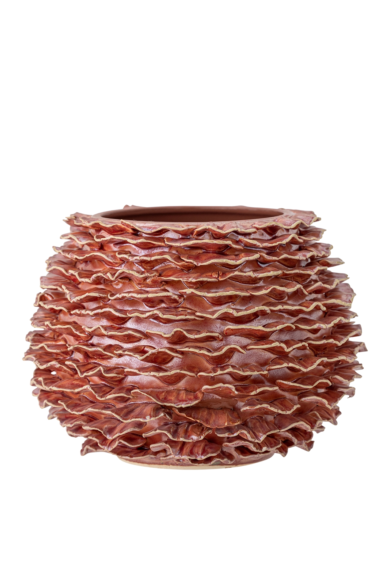 Ваза Morwen от Bloomingville имеет красно-розовую глазурованную поверхность с непрерывными волнистыми слоями, создающими динамичную текстуру. Выразительный дизайн притягивает взгляд и делает вазу художественным центром внимания. Ваза изготовлена из фаянса, цвет глазури может варьироваться. D22xH16 см.
