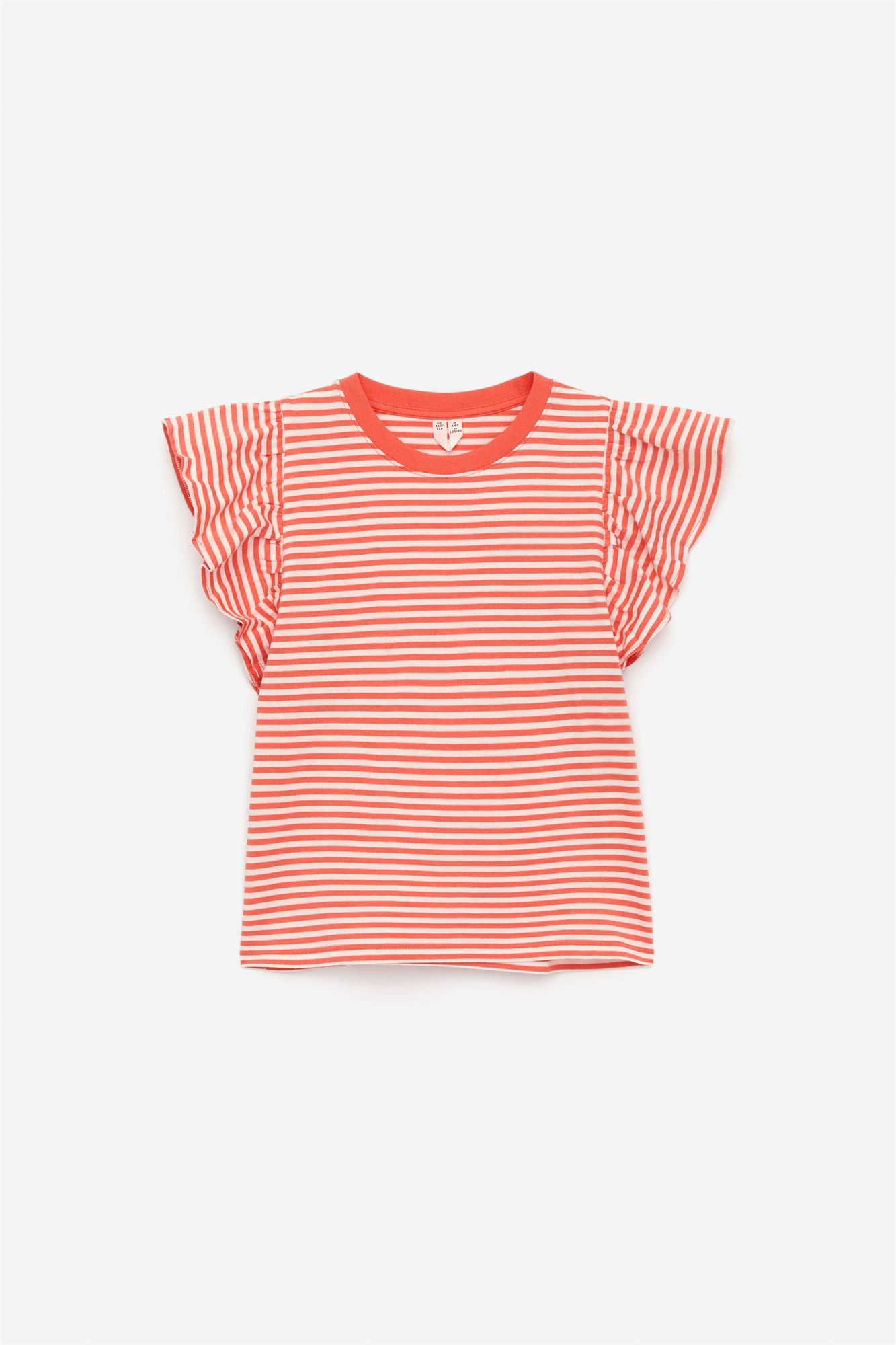 Топ из однотонного джерси из хлопка с оборками по краям рукавов и ребристым вырезом.