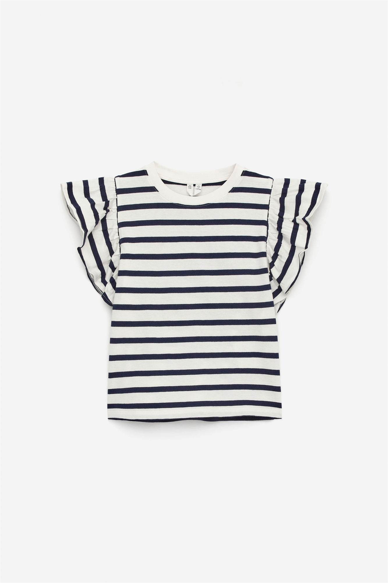 Топ из однотонного джерси из хлопка с оборками по краям рукавов и ребристым вырезом.