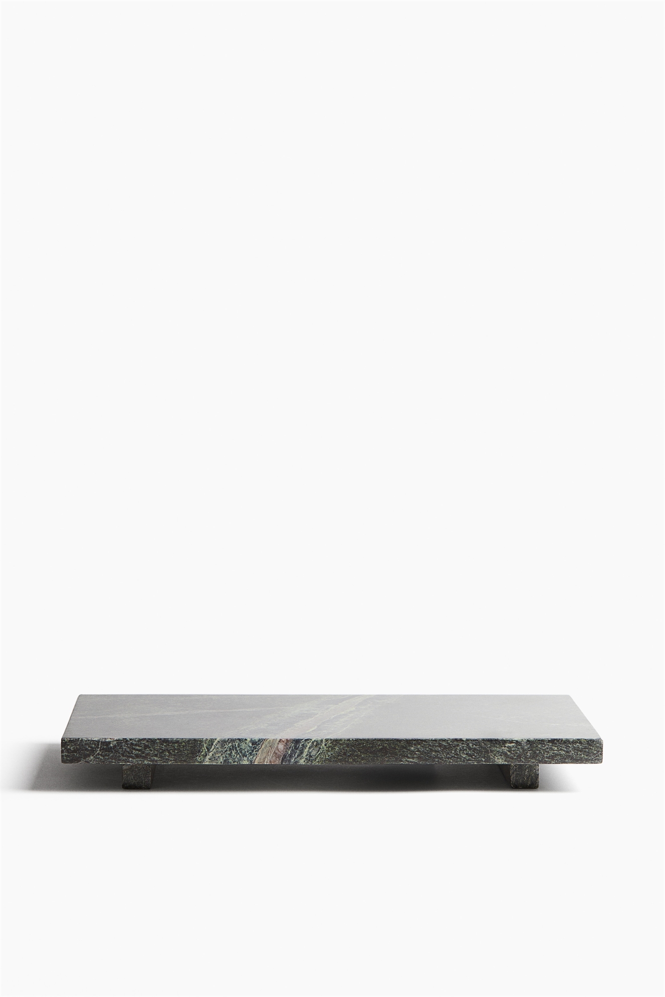 Прямоугольная сервировочная доска из мрамора. Поднимите настроение на званом ужине с помощью этого великолепного предмета, идеально подходящего для сервировки любых блюд - от фруктовых композиций до закусок.