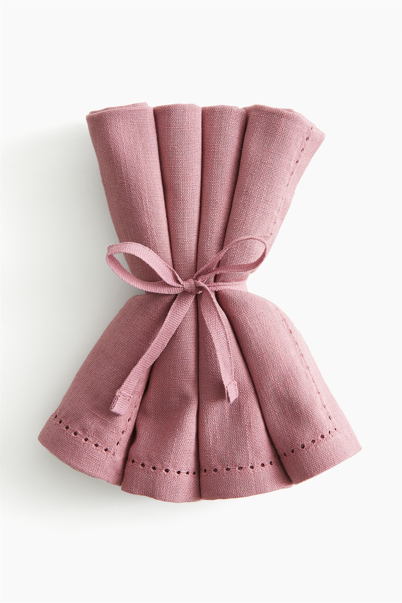 Упаковка из четырех салфеток из смеси льна и хлопка с перфорированными краями, создающими изящный узор и придающими изысканность сервировке стола.