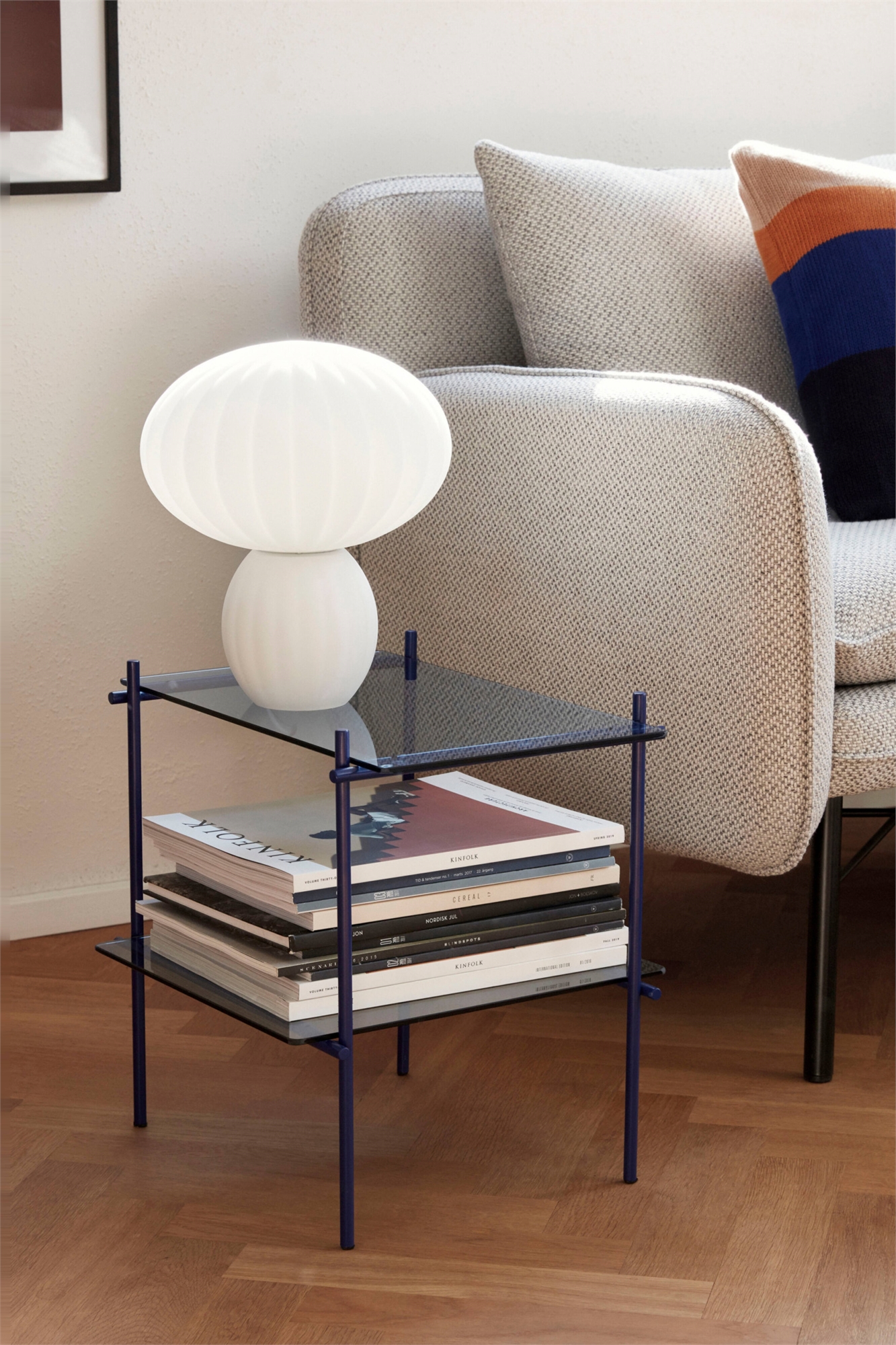 Этот столик - универсальный дизайнерский объект и уникальная достопримечательность. Его можно использовать в качестве журнального столика, прикроватной тумбочки и многого другого. Синее стекло служит стильным акцентом. Легко чистится. Размер: 40x34xh39 см