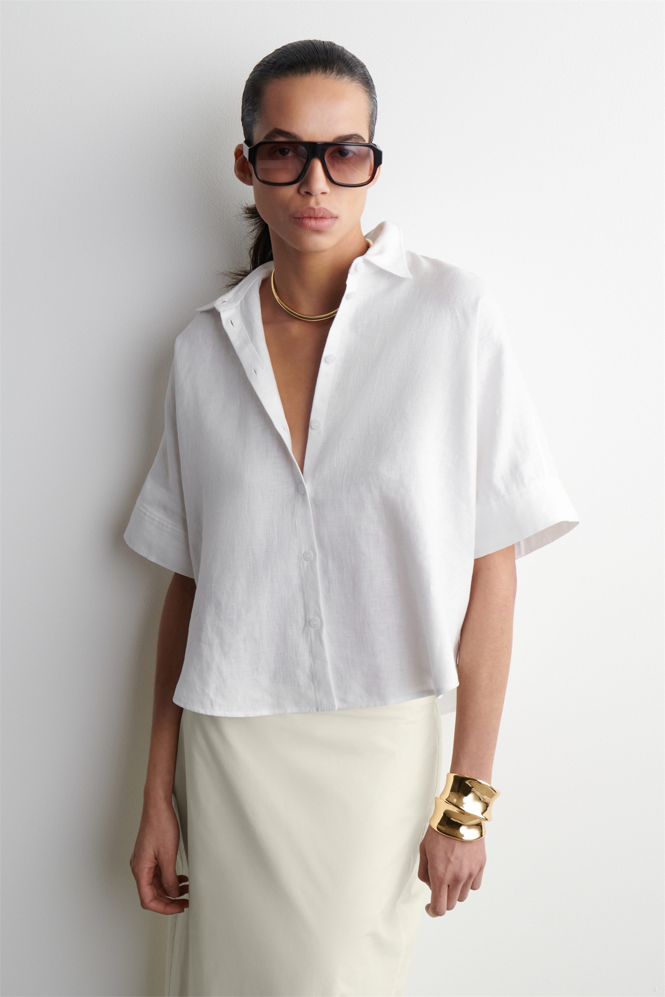 Эта свободная рубашка предлагает непринужденный подход к летнему гардеробу. Она выполнена из чистого льна, обладающего естественной легкостью, и имеет заостренный воротник и короткие рукава. Regular fitЗастежка на пуговицахПереработанный лен изготавливается из отходов прядильного производства или отходов раскроя ткани в процессе производства. Отходы механически перерабатываются и прядутся в новую пряжу Материал: 70% льна, 30% переработанного льна. Без учета отделки / Машинная стирка Длина по спинке для размера EU 36 составляет 59,3 см / Модель носит размер EU 36