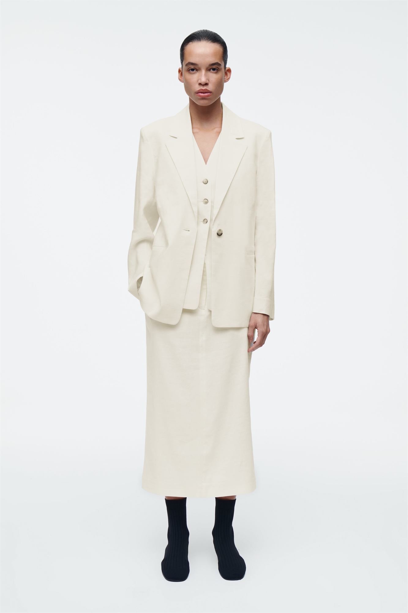Подиумная коллекция COS SS25 основывается на кодексе долговечного дизайна и исключительного мастерства. Предлагая современный взгляд на пошив, эта юбка-миди выполнена из первоклассной ткани европейского льна и имеет прямой силуэт колонны с удлиненным вентиляционным отверстием сзади. Внутри пояса - фирменная регулируемая завязка, позволяющая добиться идеальной посадки. Подойдите к костюму с блейзером в тон. Узкий кройЗастежка на крючок и молниюЕвропейский лен™ - это льняное волокно высшего качества, выращенное без использования орошения, кроме исключительных случаев, или генетически модифицированных семян Состав: 60% европейского льна™, 38% вискозы, 2% эластана. Без учета отделки / Сухая чистка Длина по спинке для размера EU 36 составляет 79,8 см / Модель носит размер EU 36