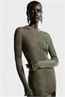 Топ из тонкого трикотажа с круглым вырезом и длинными рукавами. Манжеты и подол отделаны кантом.