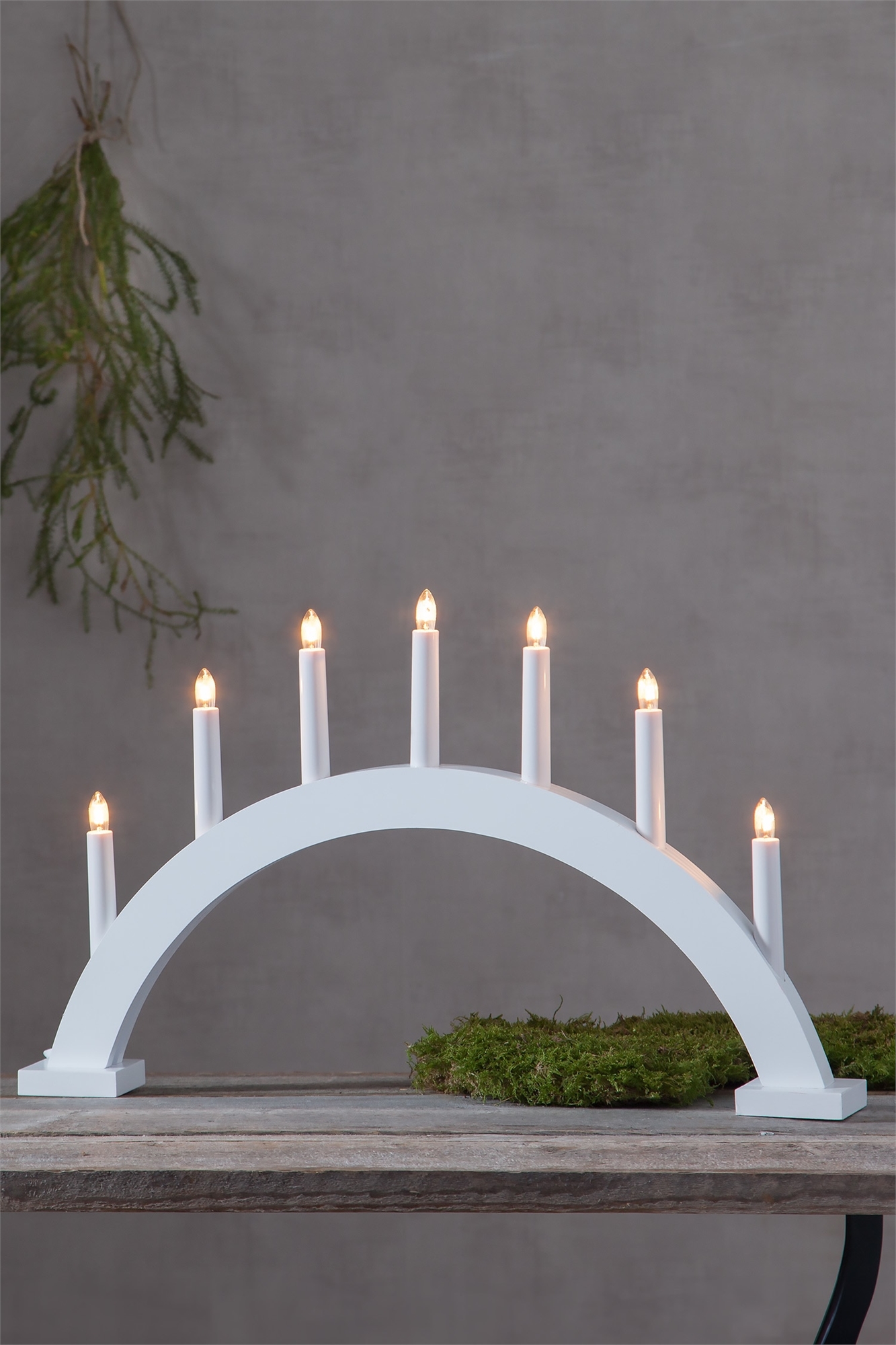 Деревянный адвент-подсвечник с 7 источниками света. Поместите подсвечник, например, в переднее окно, чтобы создать прекрасную атмосферу Адвента в вашем доме. Высота 34 см. Ширина 57 см. Длина соединительного кабеля 180 см.