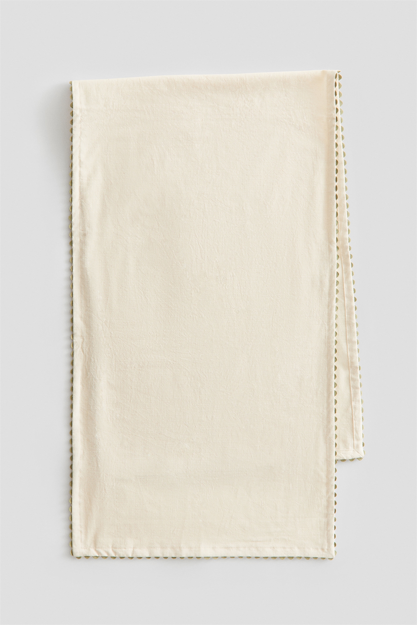Настольная дорожка из хлопчатобумажного полотна с гребешковыми краями.