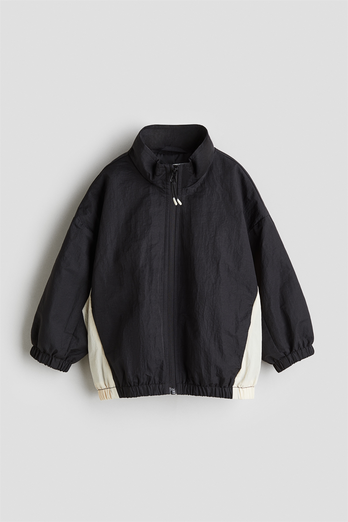 Ветровка из нейлона с контрастными цветными панелями. Воротник-стойка и застежка-молния спереди. Спущенные плечи и незаметные передние карманы. Эластичные манжеты и подол. На подкладке.