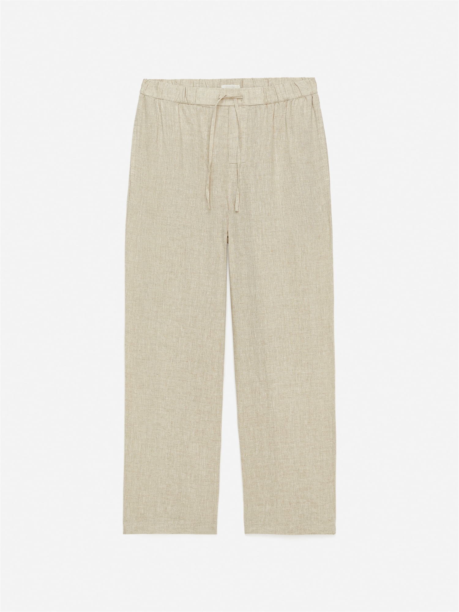 Льняные брюки непринужденного покроя. Модель с эластичным поясом и утягивающим шнурком. Карманы в боковых швах.